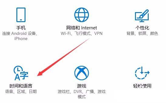 2、接着在打开的Windows设置窗口中点击“时间和语言”图标