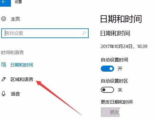 3、在打开的新窗口中点击左侧边栏的“区域和语言”菜单项