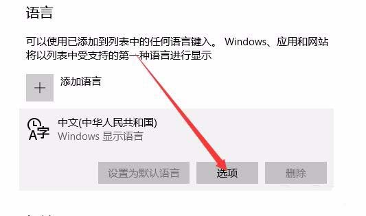 4、在右侧新打开的窗口中点击中文语言快捷链接,然后点击“选项”按钮
