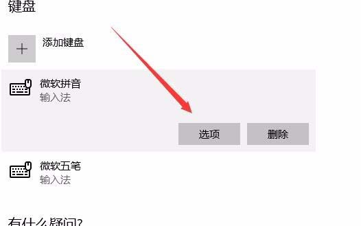 5、在新打开的键盘窗口中,我们点击经常使用的输入法,然后点击“选项”按钮