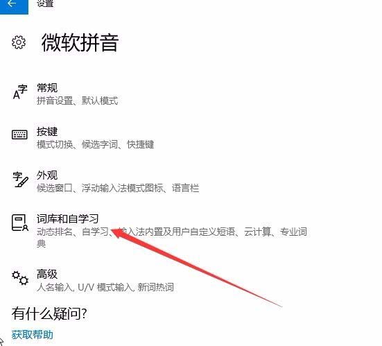 6、在打开的输入法设置窗口中,点击“词库和自学习”快捷链接