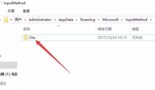 8、接着我们再打开系统安装盘,定位到C:\Users\用户名\AppData\Roaming\Microsoft\InputMethod文件夹,把其下的CHS这个文件夹以及该目录下的文件全部删除。这样以后就会大大减少输入法打字卡顿的问题了。