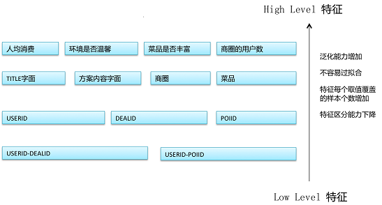 训练数据少,High Level特征多,则使用“复杂”的非线性模型(流行的GBDT、Random Forest等);