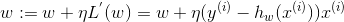 随机梯度下降(Stochastic Gradient Descent),每一步随机选择一个样本,计算相应的梯度,并完成w的更新,如下式,