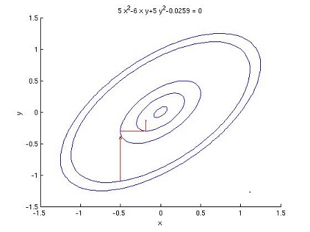对于w,每次迭代,固定其他维度不变,只对其一个维度进行搜索,确定最优下降方向(示意图如下),公式表达如下: