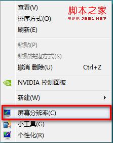 1、桌面空白处单击鼠标右键,选择“屏幕分辨率”;