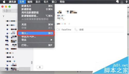 5、打开通讯录。选择菜单:文件—导入。选择你刚才保存的文件。