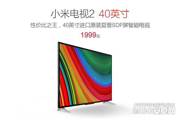 40英寸版小米电视2售价1999元,号称性价比之王,该款电视即日起开启预约,3月31日首次开卖。