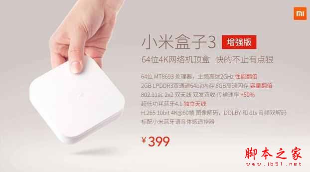 小米盒子3增强版是目前性能最强劲的小米盒子,标配小米蓝牙语音体感遥控器,内置主动散热系统,支持Dolby dts音频双解码,售价399元。