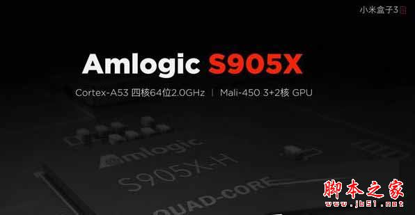 为了从容应对你的观影及娱乐需求,小米盒子3s采用了Amlogic S905X Cortex-A53 4核 64位处理器,主频高达2.0GHz,配备Mali-450 3+2核GPU,与10月份上市的美国版小米盒子采用了同款处理器。观看超高清视频、玩大型游戏时,不仅将呈现更精致细腻的画面,还将拥有不可思议的畅爽快感。