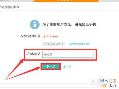 提供你所收到的动态验证码之后,单击“下一步”。