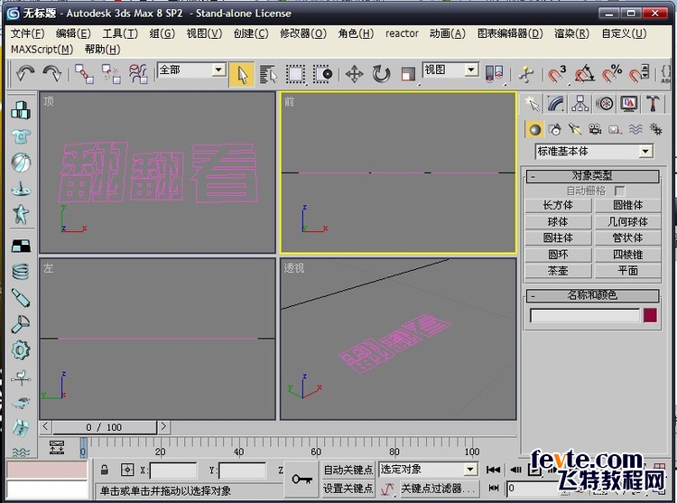 5.用【选择】或【选择并移动】工具选中字,【修改器】-【网格编辑】-【挤出】,