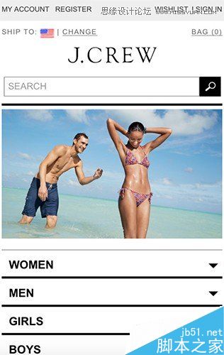 如果在你的网站中,搜索是主要的功能,那么你在做移动端页面优化的时候应该突出这一功能,因为它是高转化率的功能,确保它足够显眼是很有必要的。当用户想要获取特定功能的时候,倾向于使用搜索功能来实现,所以,搜索应当是用户一打开页面就能看到的控件。通常应当让搜索框置于页面顶部,以文本输入框的形式存在。
