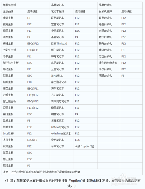 (2) 接下来在面查找适合您当前使用的主板品牌或笔记本品牌的快捷键,然后重新启动电脑。