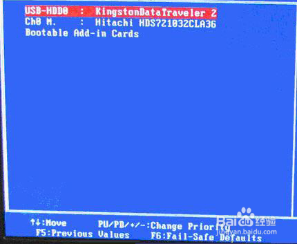 然后选择第一项,然后用“+”“-”来选择,要把U盘选在上面