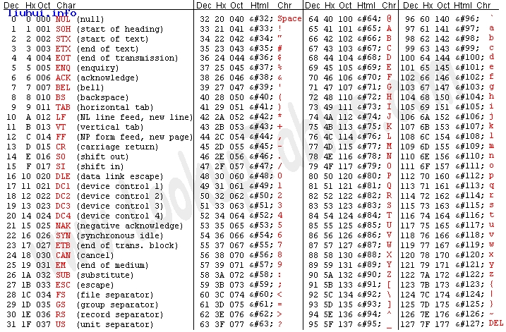 asciitable对照表图