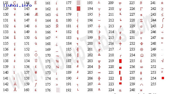 二,ASCII扩展码对照表