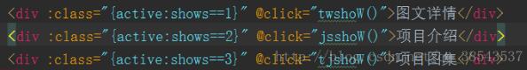 注释: :class="{active:shows==1}"就是说当shows==1时添加class=active,否则不添加。