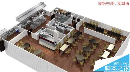 在进行商用厨房设计的时候,使用厨具通2016中的通用图块进行设计,就可以直接在厨具通3D软件中生成效果图。