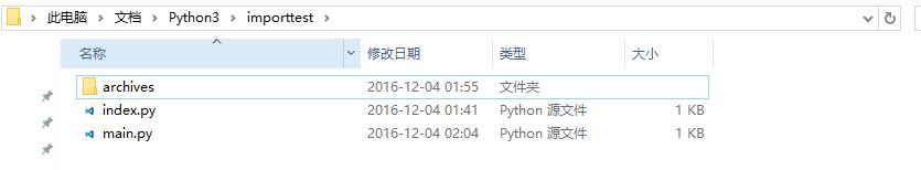 C:\Users\Admin\Documents\Python3\importtest>python main.py main archives.__index__ user hello user <module 'archives.user' from 'C:\\Users\\Admin\\Documents\\Python3\\import test\\archives\\user.py'>