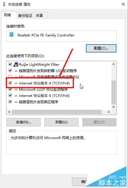 4、在网络设置中,找到此连接使用一下项目目录下的:“internet协议版本4(TCP/IPV4)”
