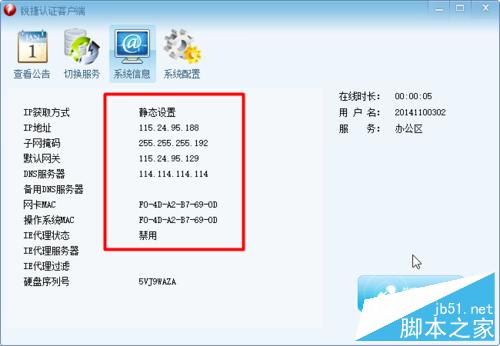 8、登录锐捷客户端之后,可以看到你之前设置好的IP信息,尽情享受网络世界的乐趣吧!