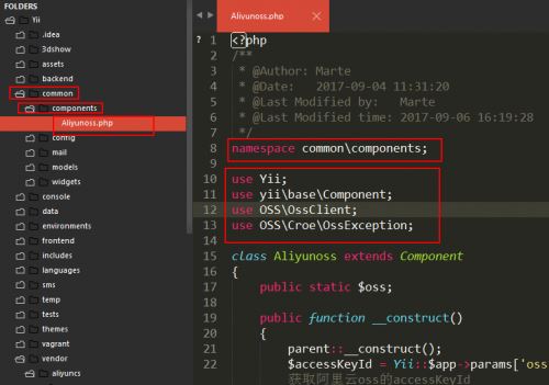 5、在根目录/common/里面新建components目录,新建Aliyunoss.php文件