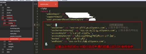 $accessKeyId = Yii::$app->params['oss']['accessKeyId']; //获取阿里云oss的accessKeyId