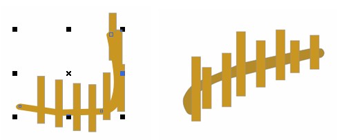 (同种方法制狗屋) 3)用手绘工具绘制栅栏,并设置轮廓粗细,如图所示: