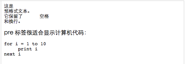二,预格式文本:此例演示如何使用 pre 标签对空行和空格进行控制。
