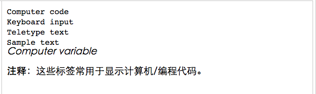 - <b>注释:</b>这些标签常用于显示计算机/编程代码。