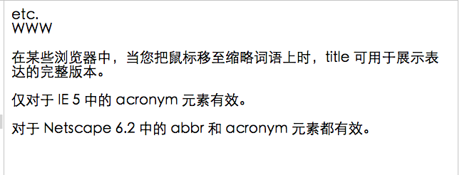 - <p>对于 Netscape 6.2 中的 abbr 和 acronym 元素都有效。</p>