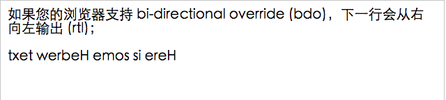- 如果您的浏览器支持 bi-directional override (bdo),下一行会从右向左输出 (rtl);