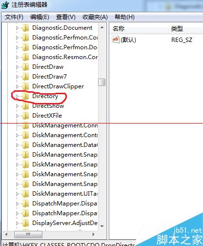 2、在注册表中展开第一项HKEY_CLASSES_ROOT,找到Directory。