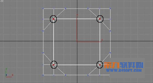 5、按(Delete)键删除选中的6个多边形。进入“可编辑的网格(Editable Mesh)”物体的顶点级别,在顶(Top)视图中框选如图6所示的顶点。