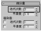 7、在“修改器列表(Modify List)”下拉列表框中选择“网格平滑(MeshSmooth)”命令,设置参数如图8所示。