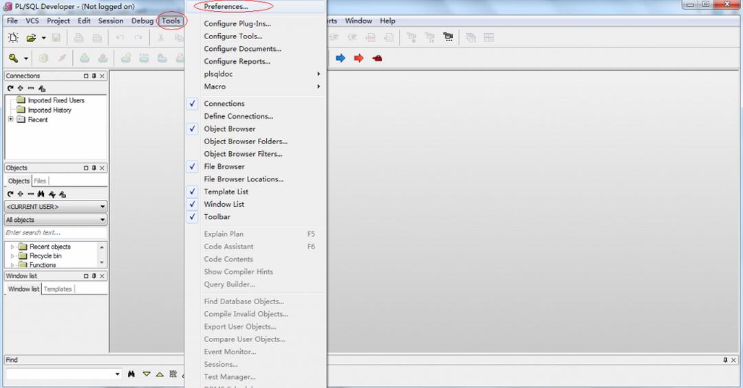 安装完成之后,运行PL/SQL Developer,此时出现的登录窗体不能进行登录,点击Calcel按钮,这时会在无登录状态下进入。