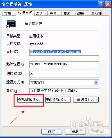 2、进入“快捷方式”选项卡的界面,单击“查找目标”按钮