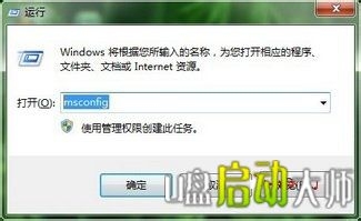 第一步、按下“Win+R”键,打开运行命令输入框,在里面输入“msconfig”后,回车(确定也可以)