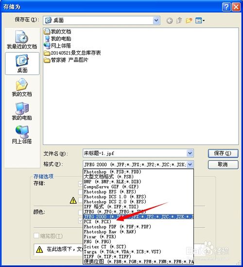 2、接下来就是选择需要保存为的格式了,在下拉选项中选择有.pcx的这一项:
