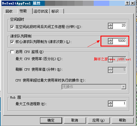 不过经过我们解决问题发现时因为网站所在的应用程序池中请求队列限制,限制在1000,根据自己的网站流量,果断设置为 5000-10000就解决了,默认的1000确实有点少了