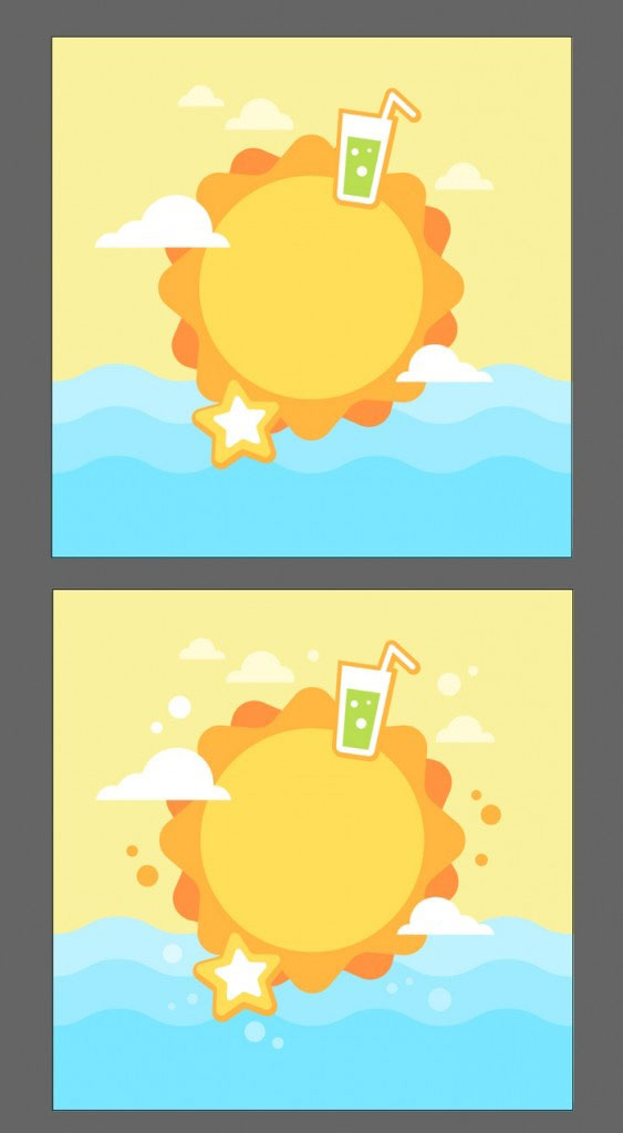 现在我们可以把所有的元素结合在一起,把夏天的元素加到太阳上了。