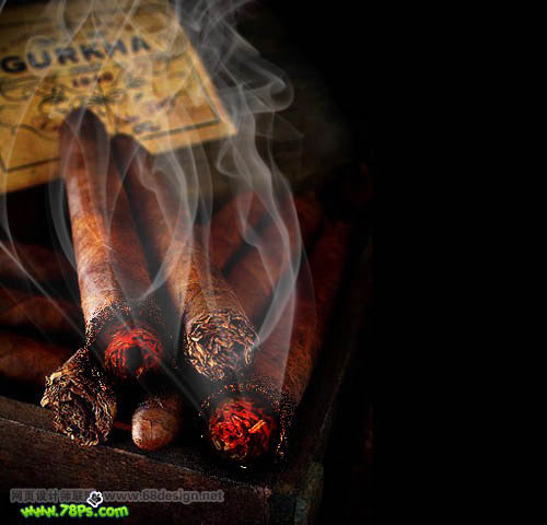 PS功能还真不错,除了可以用来处理图片,还可以玩出各种花样。下面的教程介绍如何给雪茄加上火焰及烟雾。制作的方法非常简单利用了一些图层样式和笔刷即可完成,效果非常逼真 。