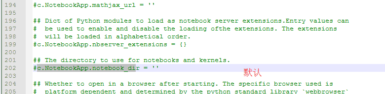 打开这个配置文件,找到“c.NotebookApp.notebook_dir=……”,把路径改成自己的工作目录。