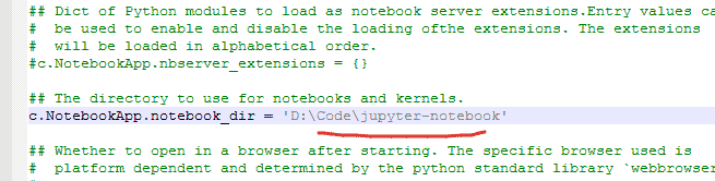 c.NotebookApp.notebook_dir = 'D:\Code\jupyter-notebook'