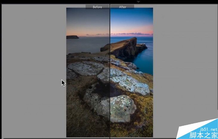 3、即时看到编辑效果 小编曾经很蠢,当年经常都想看看修图前后对比,于是会将相片归零,再按上一步……想起来真是浪费时间。不过用惯LR之后,原来可以轻轻按下Y键就可以同时间看到Before & After,真是很想打自己两巴掌!▼按下Y键会将画面垂直分开两半,方便用家对比直度相片。