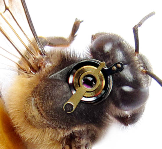 效果图虽然简单,不过非常有创意。思路:截取仪表上的一些小齿轮,小部件放到蜜蜂的局部,通过一些变换组合成机械效果;后期处理细节,增加阴影等即可。