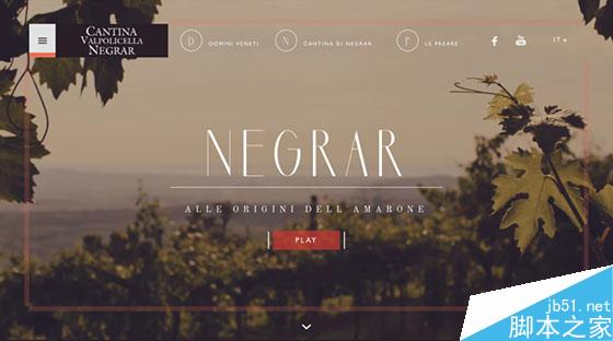 2.Cantina Valpolicella Negrar网站的文字主要采用了衬线字体,深色背景上的细长字体给人优雅精致的感觉,完美地诠释了产品特色。