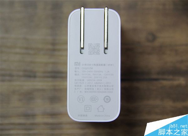 原装的电源适配器最大输出功率45W,支持5V/3A、9V/3A、12V/3A、15V/3A和20V/2.25A五个档位