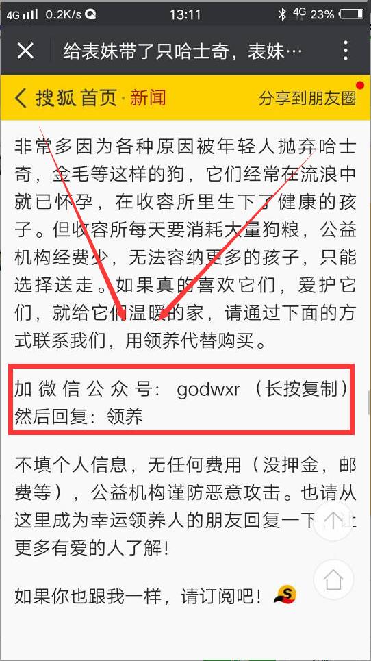 有上面两幅图可知,作者不是单纯的留下了公众号,而是告诉读者,作者那里可以免费领养宠物,只需要关注公众号即可获得。